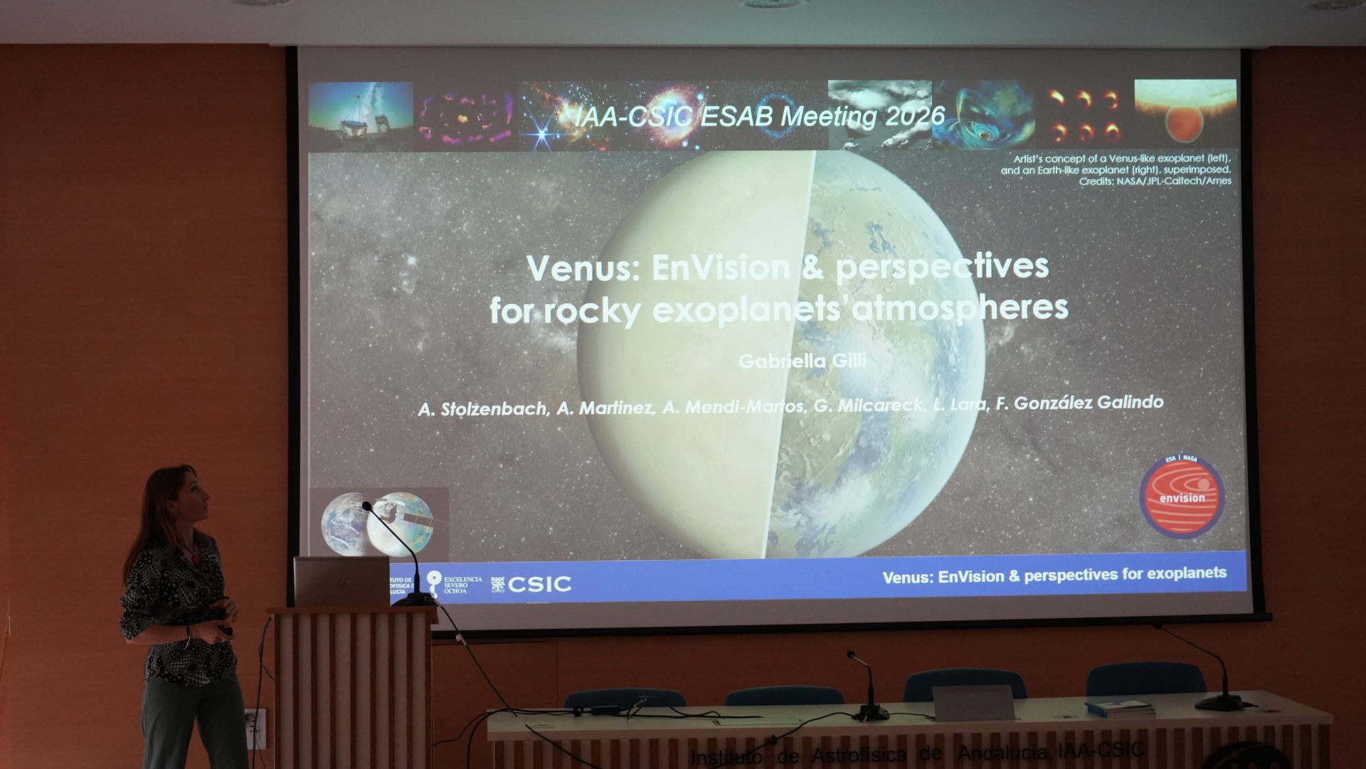 - 9:15 – 9:30: Venus: EnVision & perspectives for rocky exoplanet atmospheres. Gabriella Gilli