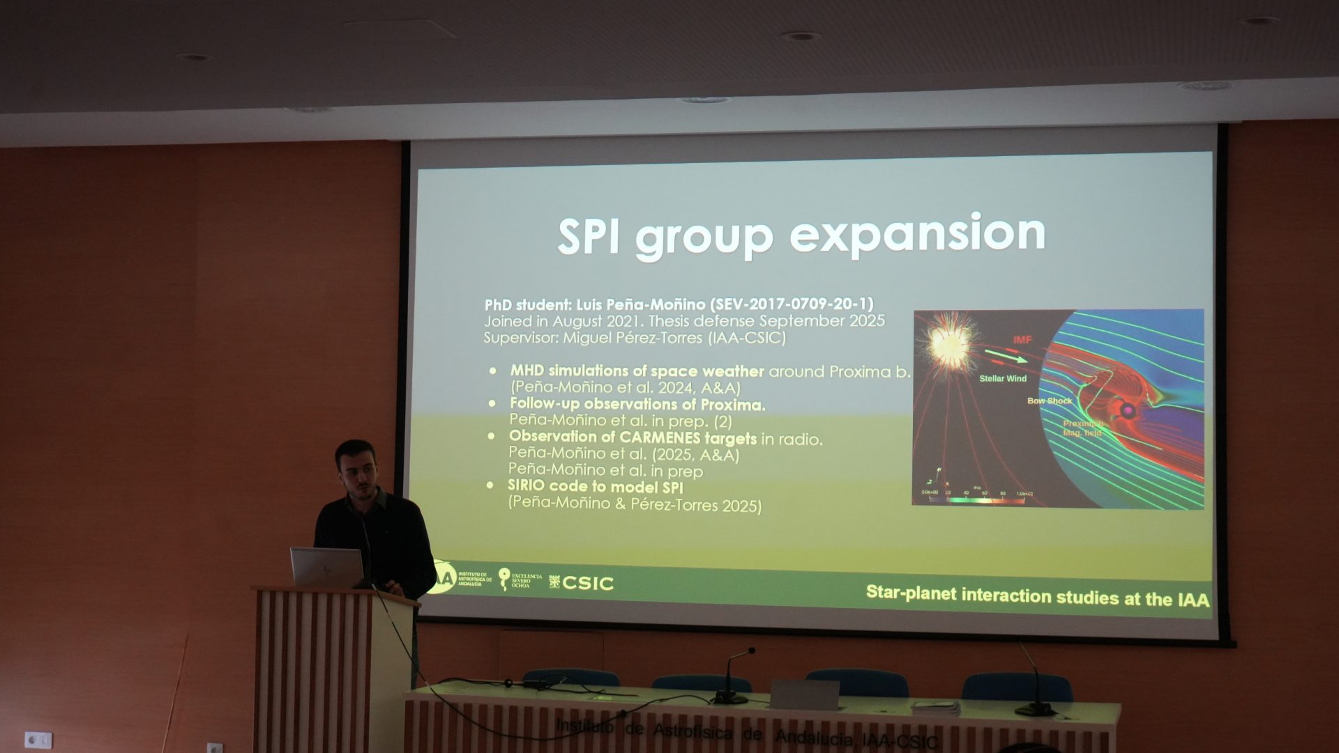 - 9:45 – 9:55: Star-planet interaction studies at the IAA. Luis Peña