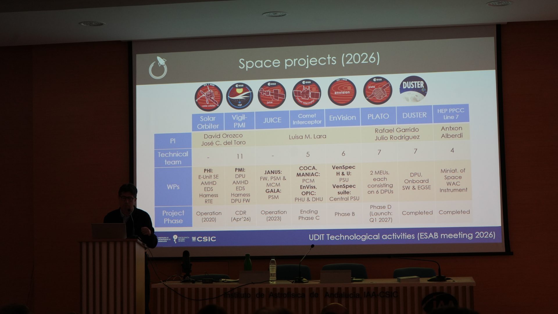 - 17:30 – 17:50: UDIT Technological Activities. Miguel Abril, responsable de la UDIT (IAA- Instrumental and Technical Development Unit)