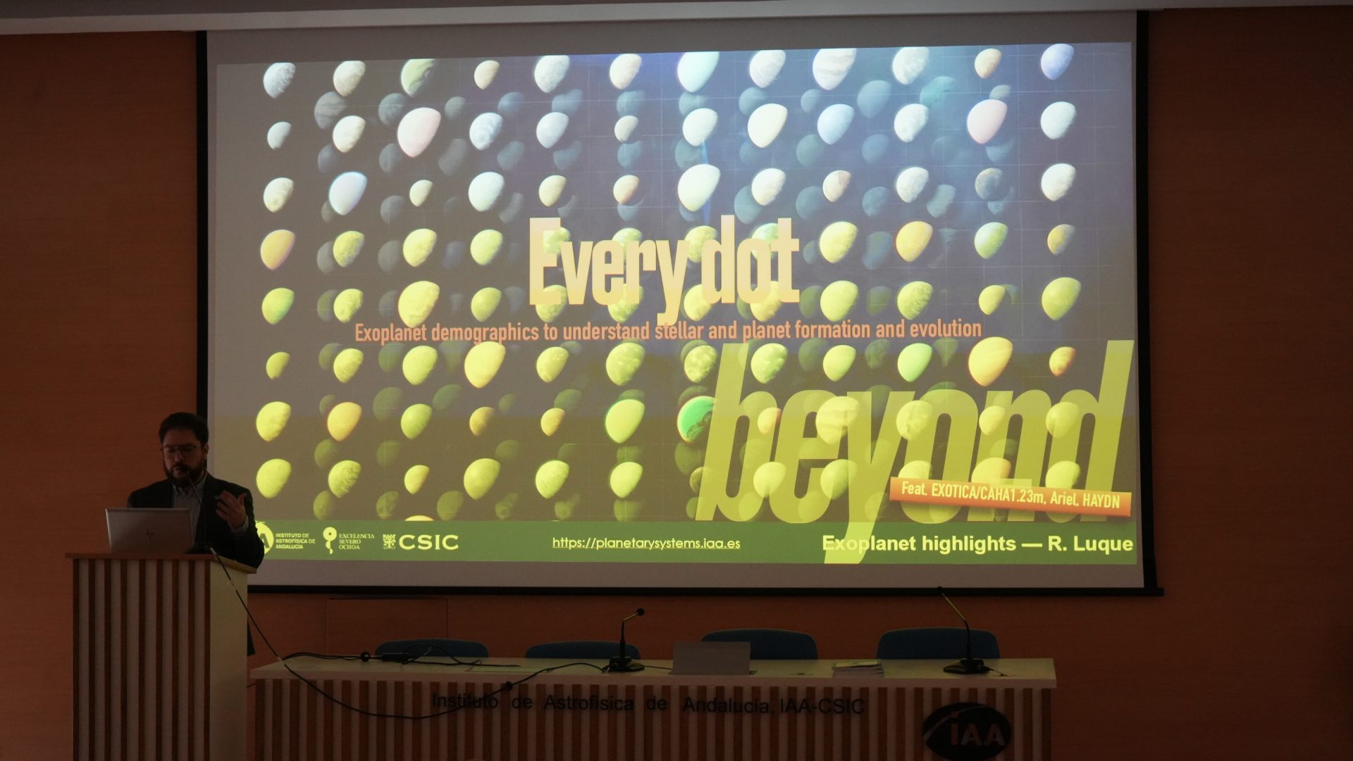 - 9:30 – 9:45: From Red Dots to Pale Blue Dots. Rafael Luque