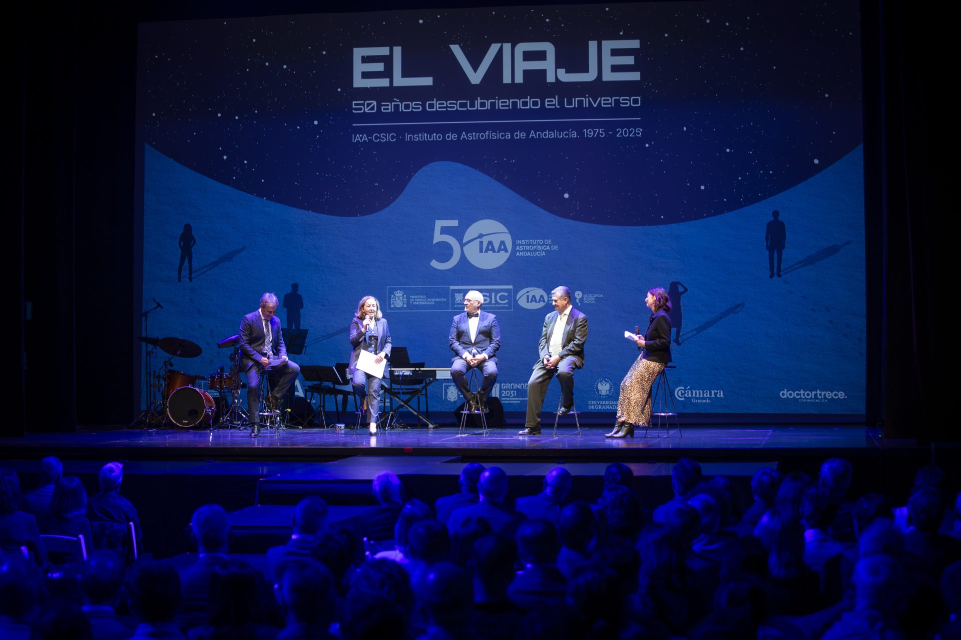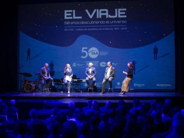 Pero no hay cumpleaños sin una fiesta. La nuestra fue el 22 de octubre. Un acto en el que más de 320 personas —entre personal del IAA, representantes institucionales e integrantes de la comunidad científica— se reunieron para festejar el aniversario y disfrutar del espectáculo ‘El viaje. Un musical cósmico’, una creación de la compañía granadina Laviebel dirigida por su fundador, Emilio Goyanes.