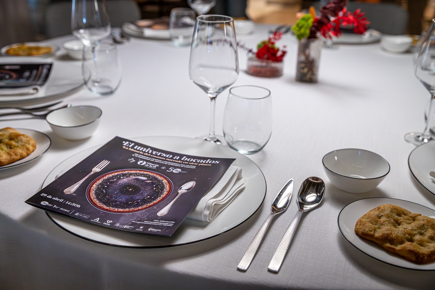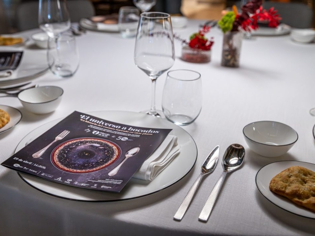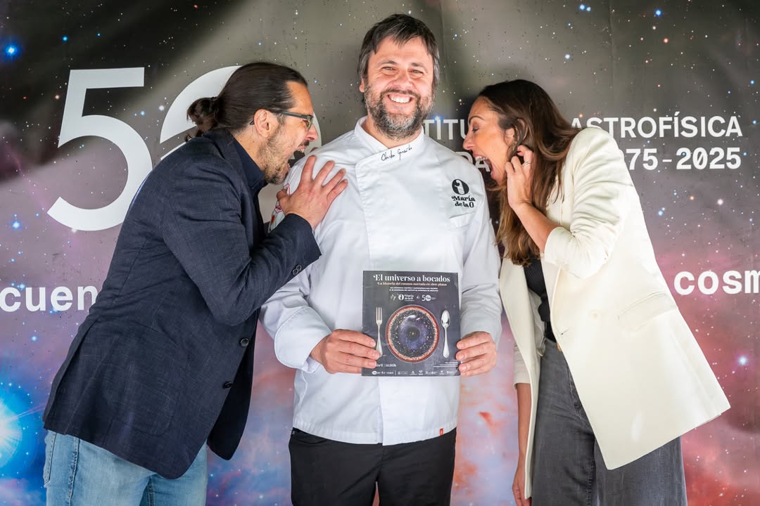 Otro universo explorado fue el de la gastronomía. Para ‘El universo a bocados’, una experiencia científica y gastronómica en el restaurante de alta cocina María de la O, el chef Chechu González y el responsable de nuestra UCC+I, Emilio García, diseñaron un menú degustación de siete platos inspirados en las etapas fundamentales de la evolución del universo: desde el Big Bang, pasando por la formación de las galaxias, estrellas y planetas, hasta llegar al surgimiento de la vida y la presencia del ser humano en la Tierra.