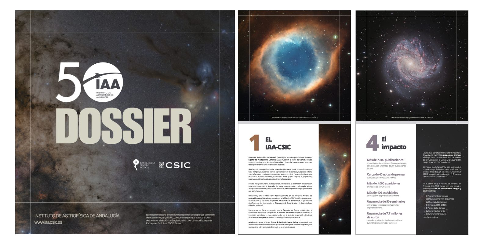 Uno de los primeros pasos fue el diseño y elaboración de un dossier con motivo del 50 aniversario, que recoge los principales hitos científicos y tecnológicos del instituto, a las personas que lo hacen posible y la labor de divulgación que desarrollamos. Un material pensado tanto para la ciudadanía como para las instituciones y entidades colaboradoras y amigas.