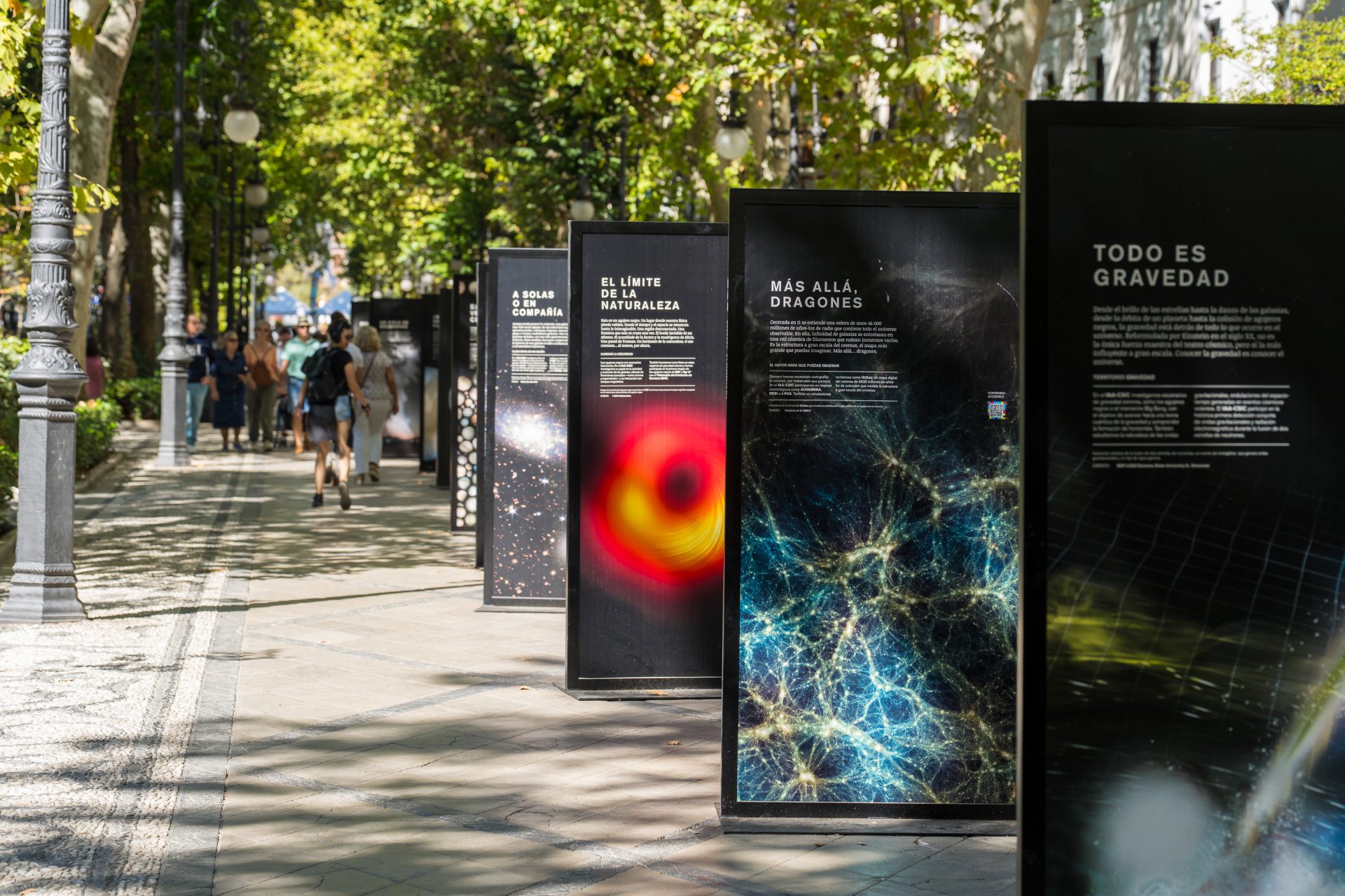 Con la colaboración del Ayuntamiento de Granada y de la Universidad de Granada se instalaron en dos céntricas calles granadinas y en los jardines del Hospital Real, la exposición “Un cambio de Perspectiva”, un conjunto de 28 paneles que combinan espectaculares imágenes del universo con la aportación científica y tecnológica del IAA-CSIC a nuestro actual conocimiento del cosmos.