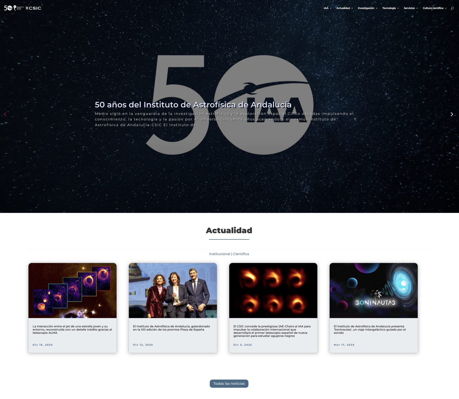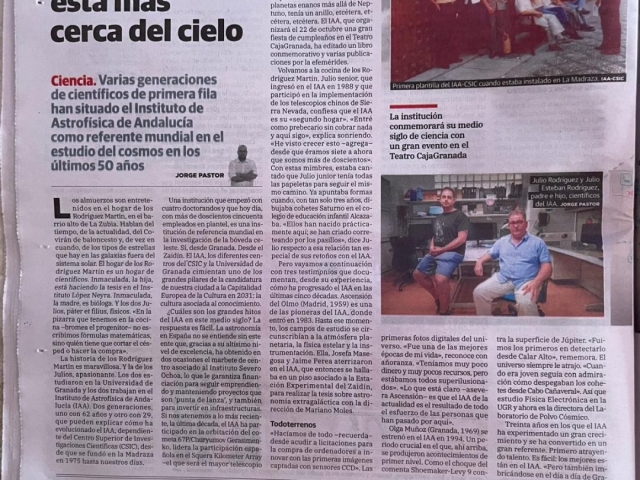 En 2025, el Instituto de Astrofísica de Andalucía (IAA-CSIC) ha celebrado medio siglo de historia. Cincuenta años de curiosidad, conocimiento y desarrollo científico; de investigación del universo en todas sus escalas y de diseño y desarrollo de la instrumentación necesaria para comprenderlo.