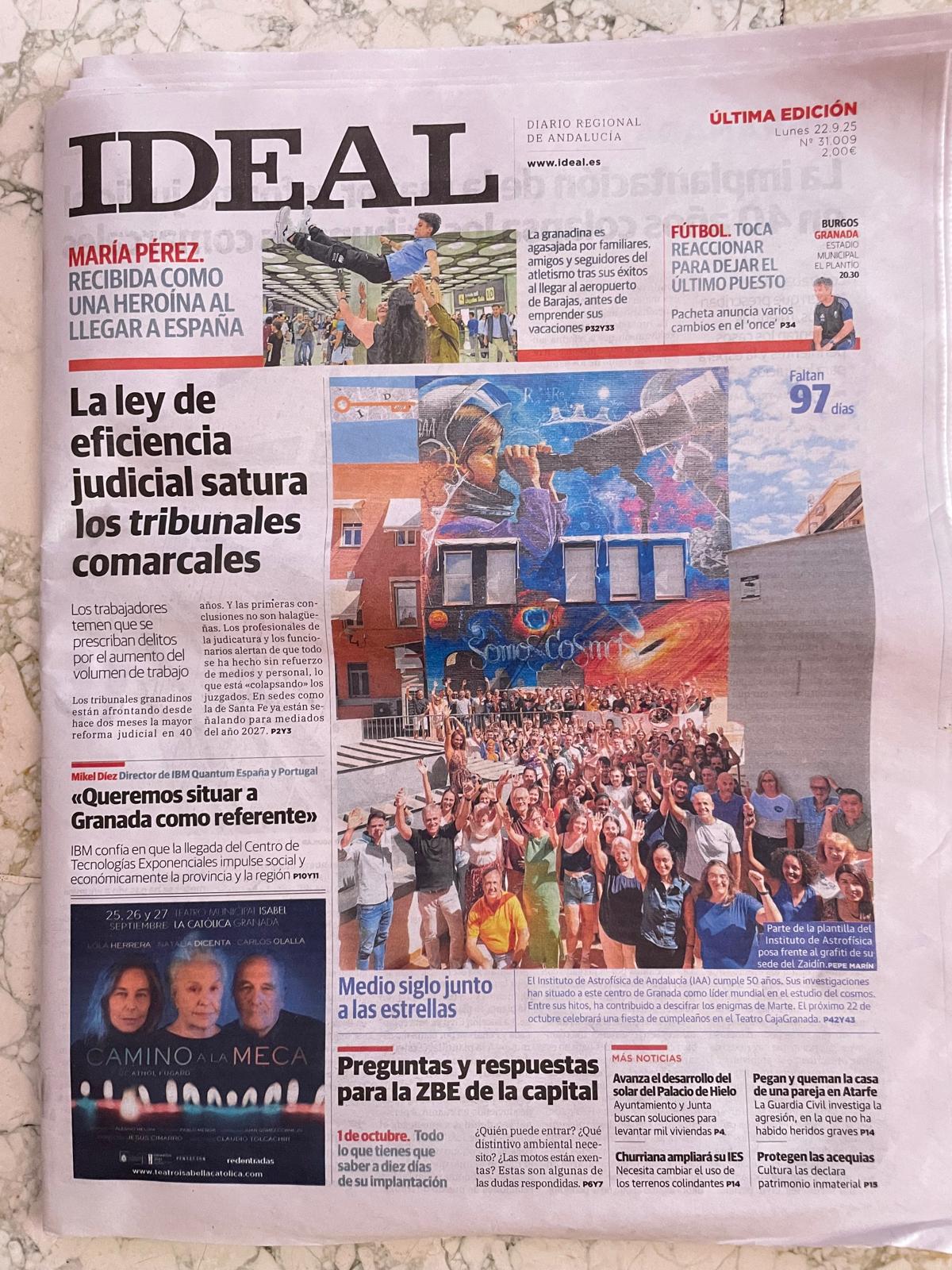 Otro de los proyectos de legado que teníamos bien marcados en nuestra estrategia inicial era la elaboración y publicación del libro conmemorativo ‘Instituto de Astrofísica de Andalucía | 1975–2025’. Escrito prácticamente en su totalidad por Silbia López de Lacalle –responsable de prensa en el IAA y directora de esta revista durante más de dos décadas–, recorre cinco décadas de ciencia y desarrollo tecnológico: desde las primeras observaciones en el Observatorio de Mohón de Trigo y los primeros lanzamientos de cohetes desde El Arenosillo, hasta los últimos resultados científicos y tecnológicos de mayor impacto. El diseño y maquetación ha sido realizado por Colectivo Verbena y su creación no habría sido posible sin el respaldo de la editorial CSIC.