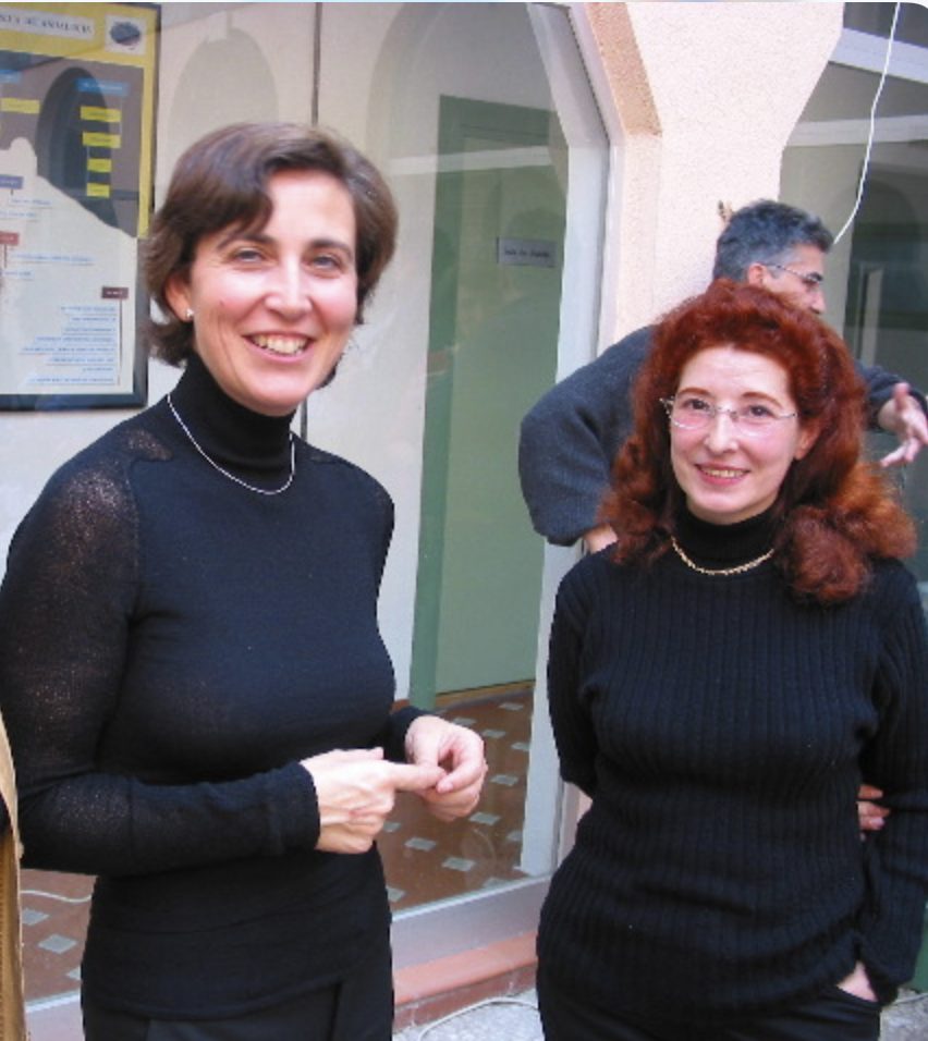 M. Ángeles Arco junto M. Ángeles Cortés, administrativa en el IAA, en la fiesta de Navidad del IAA de 2003